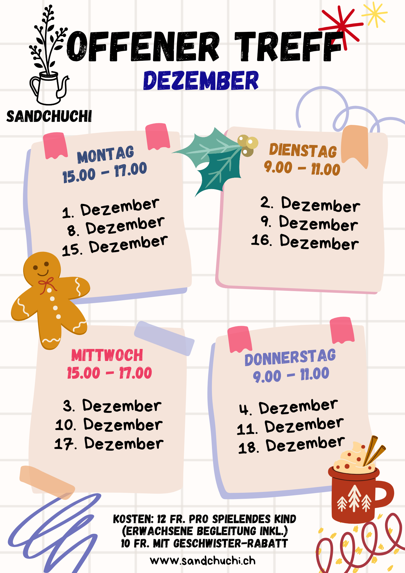- Geschwister-Rabatt: CHF 10.00 pro spielendes Kind